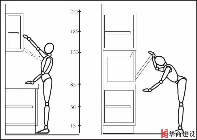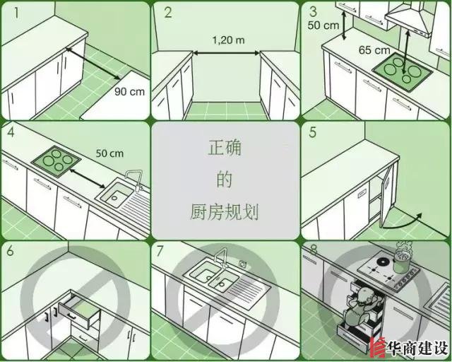 2、廚房的吊柜與其臺面之間的距離最好在50厘米左右,油煙機(jī)和灶臺之間的距離最好在65cm!