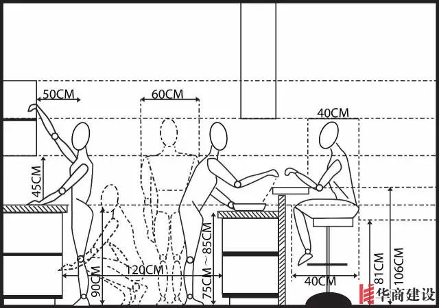 廚房操作臺面與其地面的距離最好在90cm,這樣在我們洗菜切菜的時(shí)候,就不要彎著個腰,而灶臺與地面的距離最好在75~85之間。