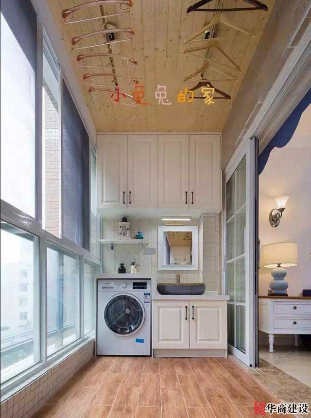 第八種:常規(guī)生活陽臺做法。鑲嵌洗衣機(jī),洗手臺,吊柜儲物。這是大部分家庭陽臺的做法,滿足日常生活需求。最簡單也是最復(fù)雜的做法,施工規(guī)劃要有一定的經(jīng)驗(yàn)。