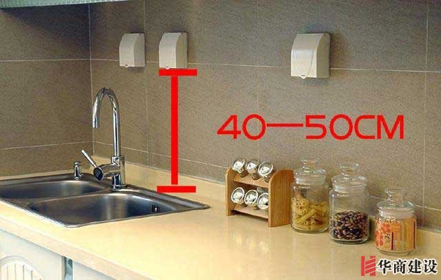 4、廚房插座距離臺面40~50cm,并且要遠(yuǎn)離灶臺,最好帶防濺罩。