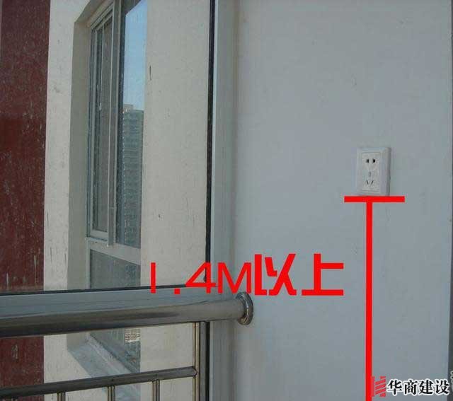 11、陽臺插座要裝在不被雨水淋到的墻面上,高度在1.4米。