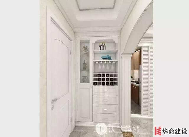 象牙白款的歐式酒柜,與房屋的布局融為一體。造型簡約而不失設計美感,功能也不容小覷,可收納酒類、裝飾品之類物品,開放式柜取拿便利,玻璃門板讓物品容易查找又不顯凌亂。