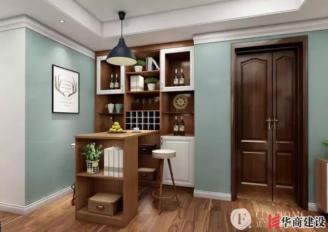 餐桌旁的酒柜,十分有設計感,看上去高檔有層次。坐在高凳上,工作之余,品嘗一杯紅酒,乃人生一大樂事。在酒中,所有的難題,都會迎刃而解。