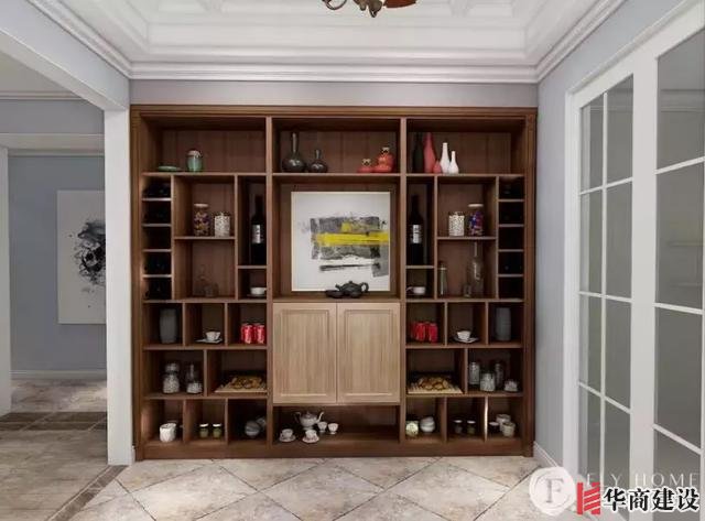 大眾家庭通常是一字型酒柜設計,多采用上格子下柜體格局設計,放上酒瓶、擺件等裝飾品,使藏酒、展示、收納功能集于一體。方正的對稱設計,整面墻的格子,足夠放下你所有的珍藏佳釀。