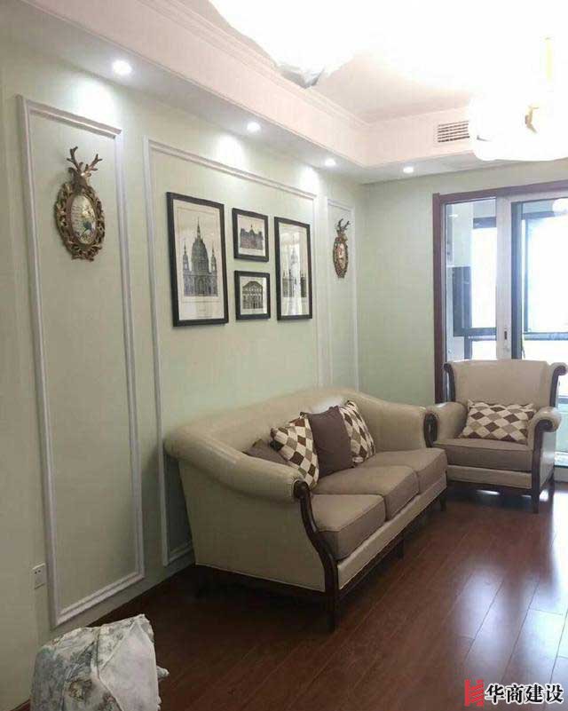 這邊是客廳,沙發(fā)背景墻貼簡單的石膏線條,然后掛著幾幅掛畫裝飾,兩邊各掛著裝飾品,特別好看??蛷d家具也是我比較喜歡的款式。