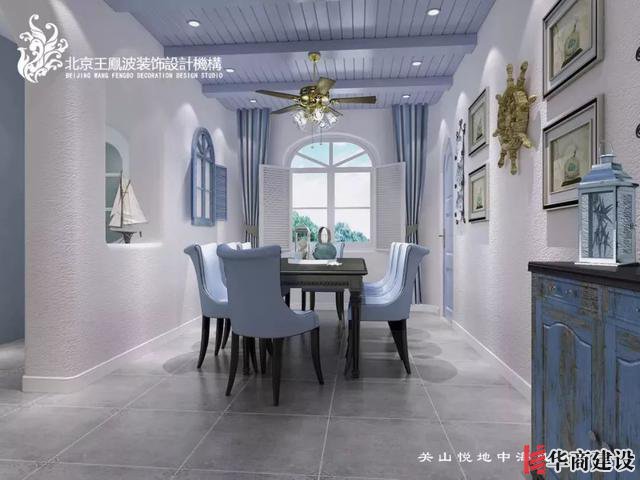 餐廳帆船和船錨等裝飾物件與客廳呼應(yīng),同樣運用大量典型拱門或窗,與整體風(fēng)格搭配